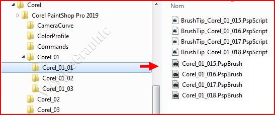 2 - Ils sont à placer dans le dossier Corel_ 01 ( Corel_1_01 /Corel_01_02 ou Corel_1_03) de PaintShop Pro 2019 (C:\ programmes/Corel/ Corel PaintShop Pro 2019 )