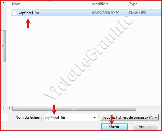 2 - Ouvrir le dossier où vous avez rangés votre pinceau Mettez en "surbrillance" le fichier jbr