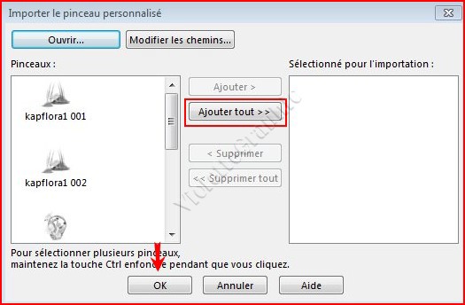 3 - Il y a plusieurs pinceaux dans ce fichier ils s'affichent dans le fenêtre de gauche clic sur Ajouter tout