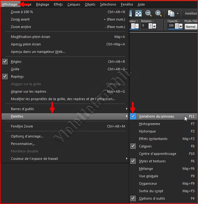 2 - Affichage/Palettes/ Variations du pinceau ( touche F11 )