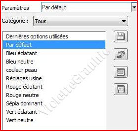 Couleurs des différents paramètres proposés :