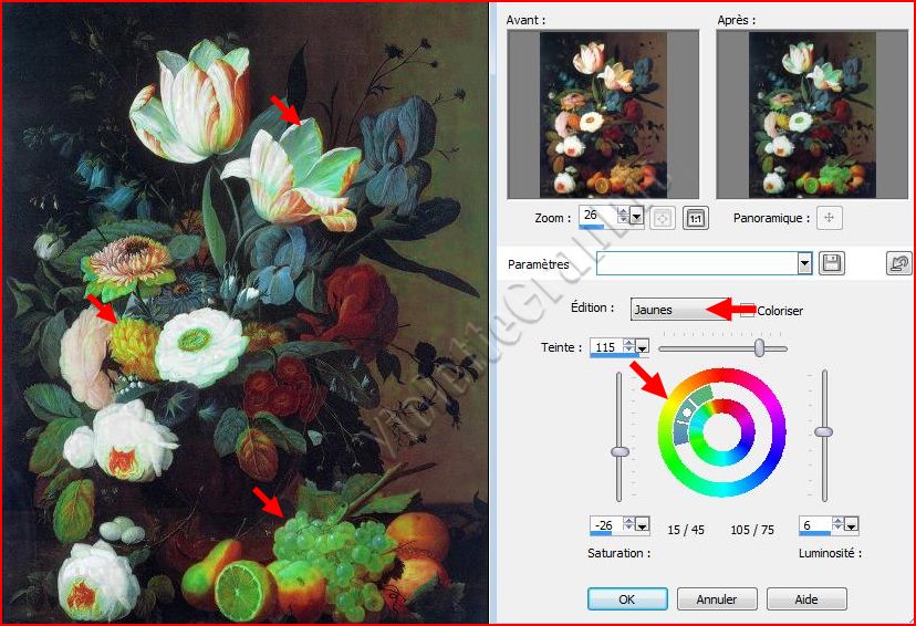 **Déplacez le curseur teinte **Déplacez le curseur saturation **Déplacez le curseur Luminosité Cliquez sur OK