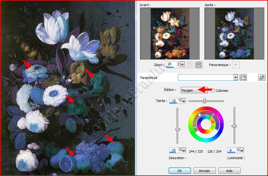 **Déplacez le curseur teinte **Déplacez le curseur saturation **Déplacez le curseur Luminosité Cliquez sur OK ***