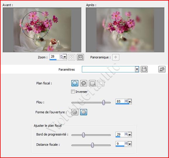 *** 2 - Activer votre image 2 - Pour créer un plan focal à l’aide de l’effet Profondeur de ChampChoisissez Réglage/Profondeur de champ Dans la boîte de dialogue Profondeur du champ réglages par défaut
