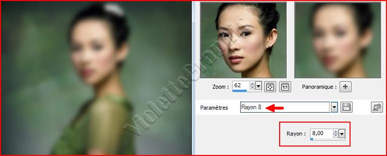 2 - Réglages/Flou/Flou gaussien réglages suivants: Rayon 8