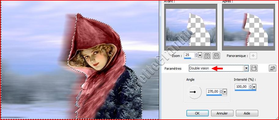 4 - Réglages/Flou/Flou de mouvement réglages suivants: Double vision