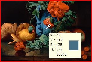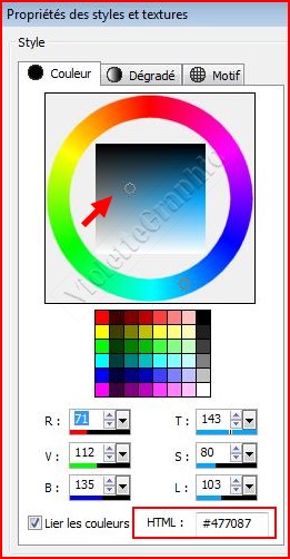 clic gauche dans le pavé arrière-plan : la couleur #477087 est affichée dans le pavé de couleur