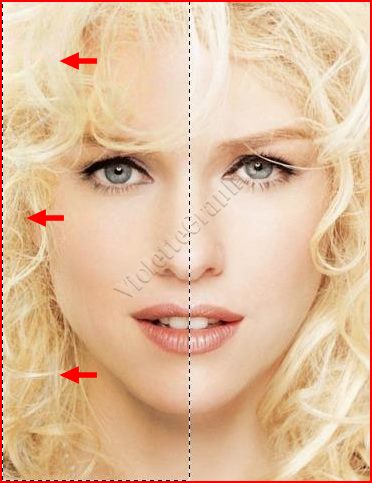 1 - Affichage/règles Partagez votre image en deux parties nous allons travailler sur la moitié gauche du visage pour pouvoir comparer