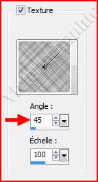et choisir la texture Plaid configurée ainsi : angle : 45°/ Echelle : 100