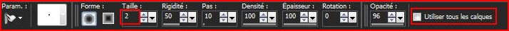 14 - Activer l'outil pinceau adoucir/ pinceau maculer configuré ainsi: