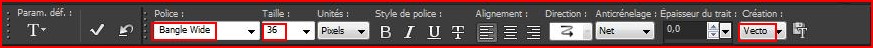 Choisir une police assez épaisse j'ai choisi la Police d'épaisseur moyenne : Bangle Wide/Taille : 36/ création vectorielle