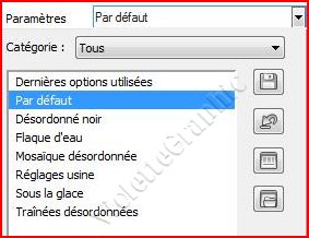 3 - Effets/Effets de distorsion/Paramètres de déplacement réglages par défaut : **Ouvrir la liste déroulante des différents paramètres :