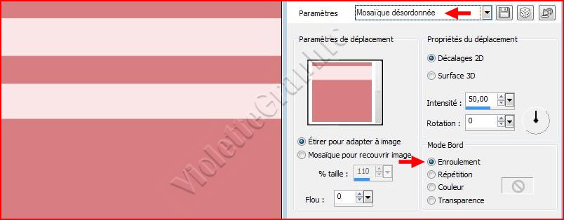 5 - Effets/Effets de distorsion/Paramètres de déplacement réglages suivants: Mosaïque désordonnée