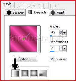 2 - Configurer un dégradé linéaire angle: 45°/Répétitions: 5/Inverser coché