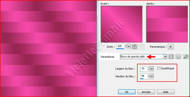 3 - Effets/Effets de distorsion/pixellisation réglages suivants : Paramètres de la grille : Blocs de grande taille