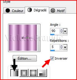 2 - Configurer un dégradé linéaire angle: 90°/Répétitions: 5/Inverser coché