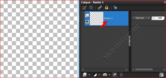 Dans la palette des Calques , le calque d'arrière-plan s'appelle Raster 1