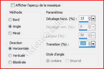 8 - Effets/Effets d'image/Mosaïque sans jointure réglages suivants: