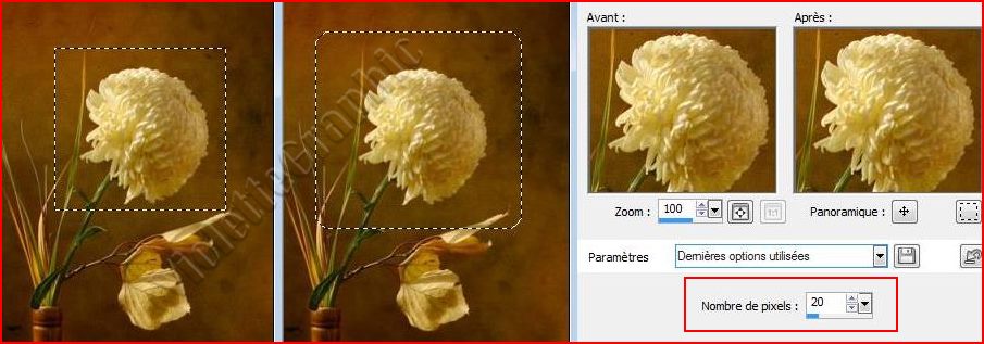 7 - Sélection/modifier/Agrandir de 20 pixels la sélection est agrandie