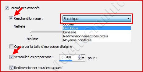 Dans la section Paramètres avancés, veillez à ce que la case Rééchantillonnage soit cochée L’option Rééchantillonner vous permet de préciser le nombre de pixels à modifier dans l’image. La méthode Bi-cubique est la plus lente, mais elle produit généralement de meilleurs résultats Dans la section Paramètres avancés, veillez à ce que la case Conserver la taille d’impression d’origine soit décochée et à ce que la case Verrouiller les proportions soit cochée Pour redimensionner une image en appliquant un pourcentage précis utilisez les zones du pavé Dimensions en pixels