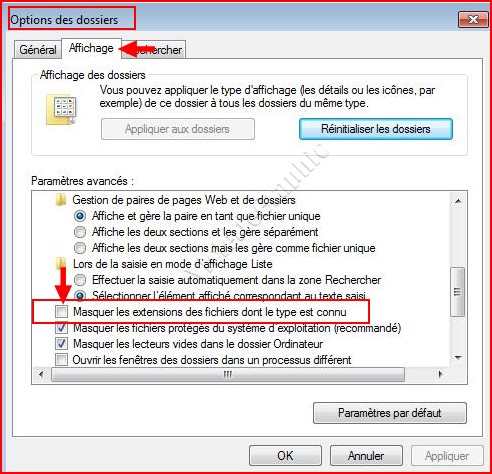 2 - Si toutefois vous ne voyez pas les extensions de vos fichiers dans