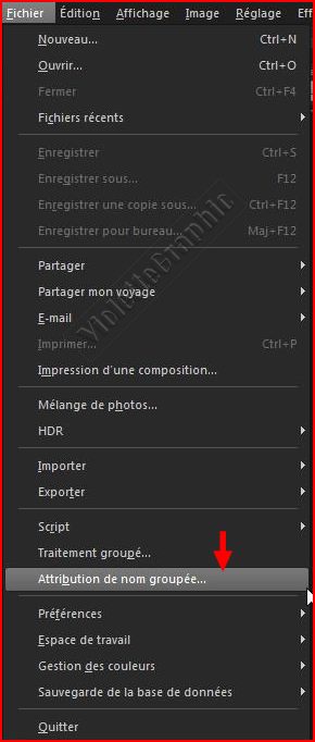 2 - Suivre ce chemin : Fichier/ Attribution de nom groupée: