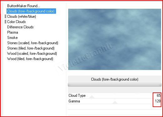3 - Effets/Unlimited/Render/Clouds (fore -/background color ) avec ces réglages: