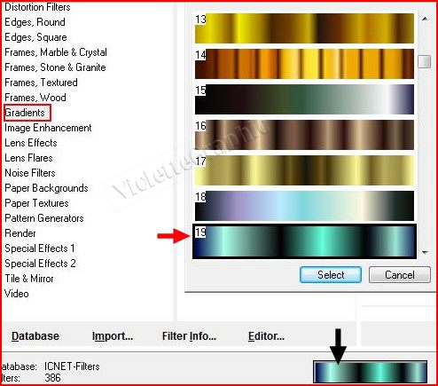 clic sur l'aperçu gradient et sélectionner le gradient 19