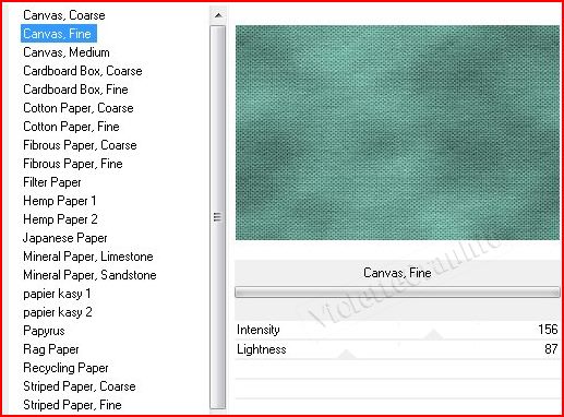 7 - Effets/Unlimited/Paper Textures/Canvas Fine réglages suivants :