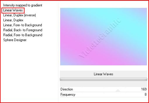 **Effets/Unlimited/Gradient / Linear Waves réglages suivants: