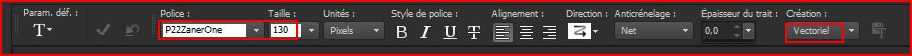 21 - Activer l'outil  Texte/Police P22ZanerOne/taille : 120/ vectoriel/Crénage = 25