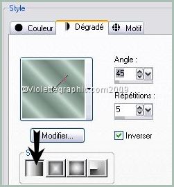 *** 1 - Ouvrir les tubes , les dupliquer et fermer les originaux *** 2 - Placer en avant-plan la couleur #deece6 et en arrière-plan la couleur #6f8579 3 - Configurer un dégradé linéaire/angle : 45°/Répétitions : 5/Inverser coché