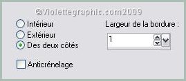 35 - Image/Ajouter des bordures : 2 pixels couleur #243e2f 36 - Image/Ajouter des bordures : 35 pixels couleur blanche Sélectionner la bordure avec la baguette magique remplir de dégradé angle: 45°/répétitions: 5/inverser coché