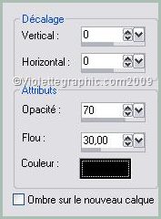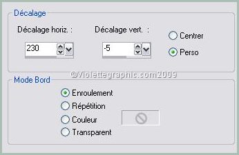 29 - Activer le tube "Giada_Wind_of_Change.pspimage" Edition/Copier/Édition/Coller comme nouveau calque Image/Redimensionner à 80%/décocher " tous les calques" Effets/Effets d'image/décalage :