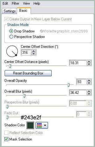 27 - Effets/Alien Skin Eye Candy Impact /Perspective Shadow /Drop Shadow,Lowest rechercher votre preset "Vyp_shadow_Mailyss2.fs" /OK Onglet basic :