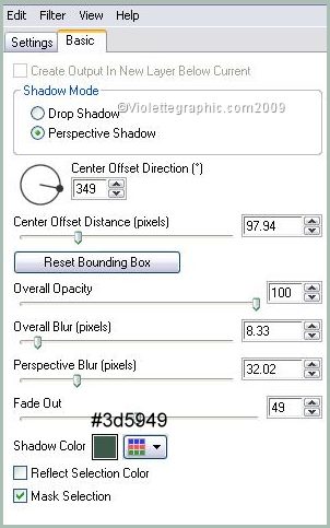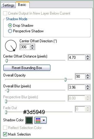 32 - Se placer sur la copie: Effets/Alien Skin Eye Candy Impact /Perspective Shadow /Drop Shadow,Lowest rechercher votre preset "Vyp_shadow_Mailyss3.fs" /OK Onglet basic :