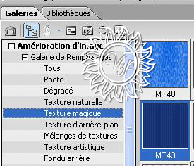 12 - Sélectionner toutes les couches sauf celle du fond et fusionner en un seul objet vous avez maintenant un joli bouquet 13 - Nous allons mettre un fond Dans la P alette Magique/Galerie de remplissage/texture Magique/double-cliquer sur la texture MT 43