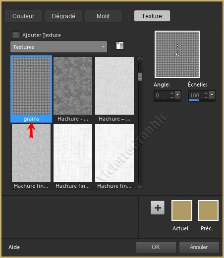 7 - Placer la couleur #b09b64 en premier-plan et rechercher la texture grains