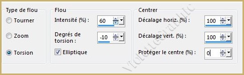 18 - Réglages/Flou/Flou radial réglages suivants :