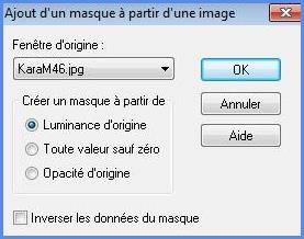 3 - Activer le masque Kara M46.jpg Couches/Nouveau calque de masque/à partir d'une image/Ajout d'un masque à partir d'une image sélectionner le masque Kara M46.jpg cocher luminance d'origine