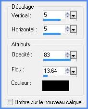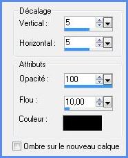 ![]() 9 - Activer le calque supérieur Couches/Fusionner le calque du dessous **Effets/Effets 3D/Ombre Portée