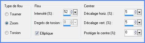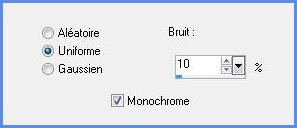 12 - Réglages/Flou/Flou radial réglages suivants : ![]() 13 - Réglages/Ajouter du bruit/Ajouter du bruit :
