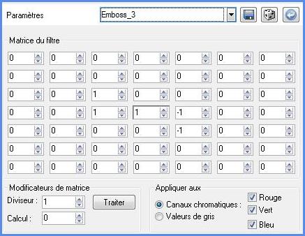 **Effets/Filtre Personnalisé/Emboss_03 réglages suivants :