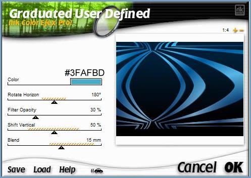 17 - si vous souhaitez appliquez le filtre sur le calque 2 Nick Color Effex Pro!1.0e / Graduated User Defined réglages prédéfinis couleur #3fafbd