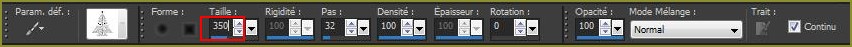 14 - Activer l'outil Pinceau et rechercher le pinceau/ taille: 350 /couleur avant-plan #8d8e31