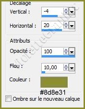 21 - Effets/Effets 3D/Ombre Portée : -4/20/100/10/couleur #8d8e31
