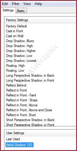 *** *** MirrorMirror vous trouverez l'original de ce tutoriel ICI *** Ce tutoriel a été réalisé dans PSP X5 mais peut être effectué dans les autres versions PSP Ces traductions m'appartiennent Il est strictement interdit de les copier ou de les distribuer sur le Net *** Pour faire ce tutoriel vous aurez besoin : Tube Alies 1VR548-woman-20, 062 013 Placez les sélections dans le dossier sélections de Corel PaintShop Pro Placez les masques dans le dossier sélections de Corel PaintShop Pro **Placez le préréglage "Astrid Shadow 132" dans le dossier du plugin Alien Skin EyeCandy5 Impact-Perspective Shadow **Placez le préréglage "Astrid Blacklight 132" dans le dossier du plugin Alien Skin EyeCandy5 Impact- Blacklight *** Filtres : ICI Mehdi/ Sorting Tiles VM Toolbox / MirrororriM Mura's Meister / Copies AlienSkin /EyeCandy5 Impact / Backlight AlienSkin / EyeCandy5 Impact / Perspective Shadow L and K landksiteofwonders / L en K's Zitah *** Matériel : ICI *** Les tubes sont offerts à usage personnel Vous n'avez pas la permission de placer ces tubes sur un autre site sans la permission du créateur ***