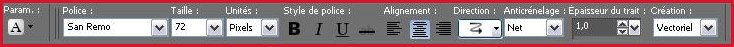 13 - Activer l'outil Texte/Police San Remo/taille : 72 couleur avant-plan #000000 /couleur arrière-plan #d4d4162c162c