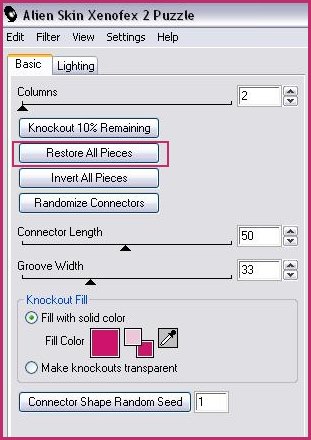 25 - Activer le calque 3 Effets/filtre xenofex/puzzle clic sur "Restore all piece" clic sur "Randomize Connectors"