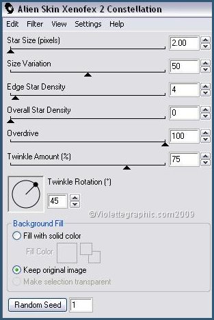 30 - Retourner dans votre PSP Annuler les deux dernières opérations 31 - Effets/Alien Skin Xenoflex/Constellation : clic sur "Random Seed" Sélection/Désélectionner